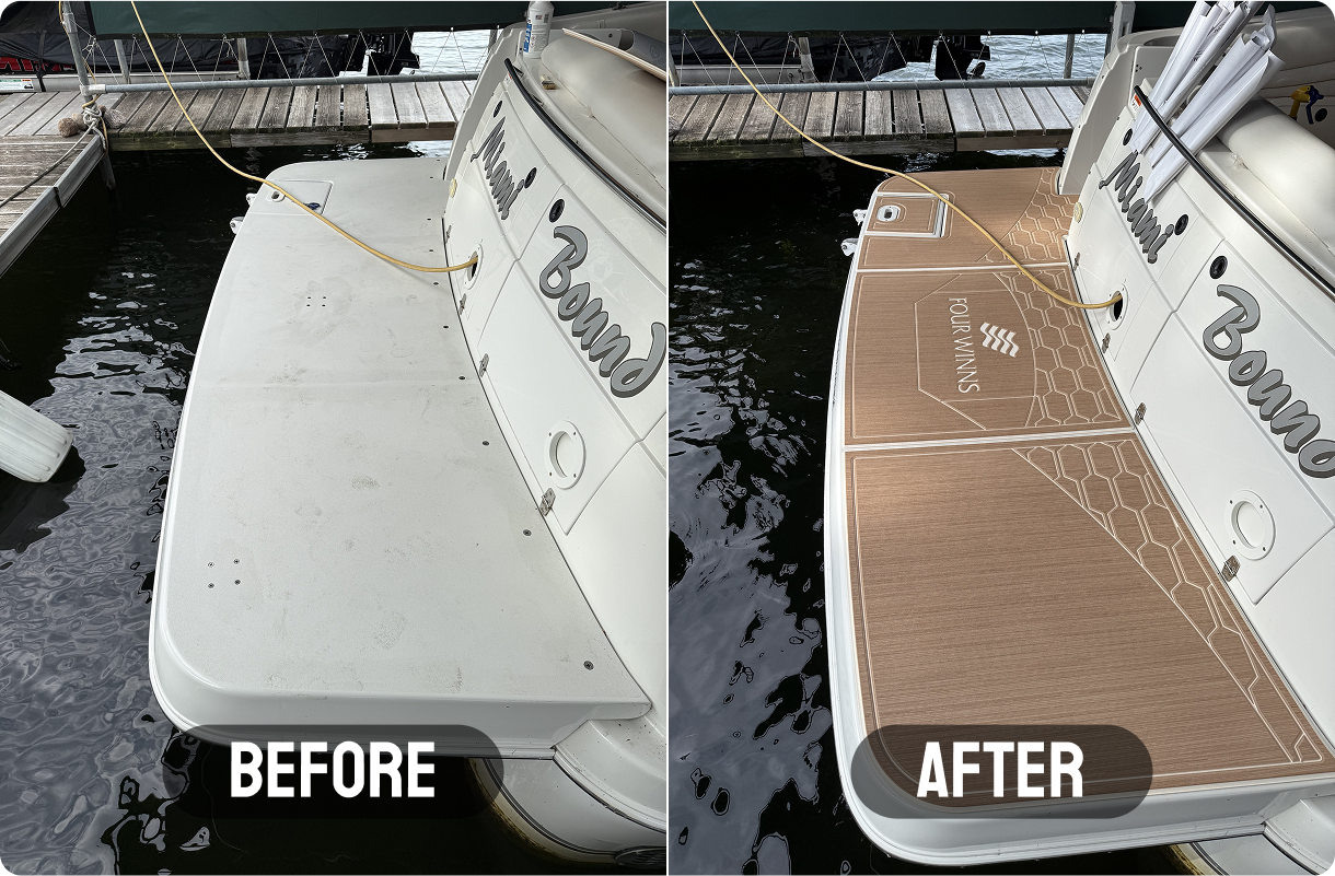 See the transformation with our custom marine decking—enhancing style, comfort, and durability.
