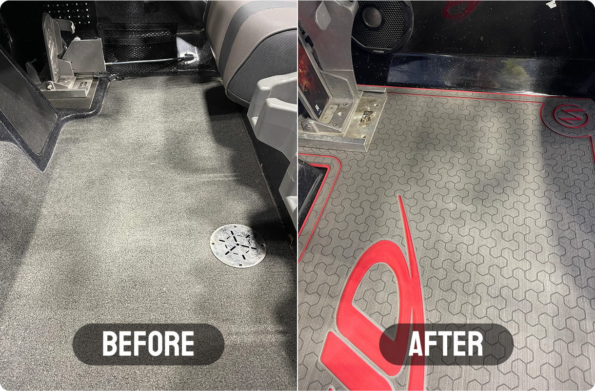 Our patented fiber is a game-changer—no one else offers it! Choose adhesive backing for a secure fit or snap-in installation for easy removal. Durable, non-slip, and built for marine excellence.