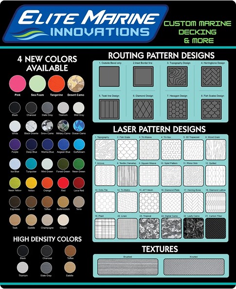 Choose from a variety of precision-cut routing patterns, including teak-line designs, diamond grids, and other patterns designed for enhanced grip, durability, and visual appeal while ensuring top-tier performance.
